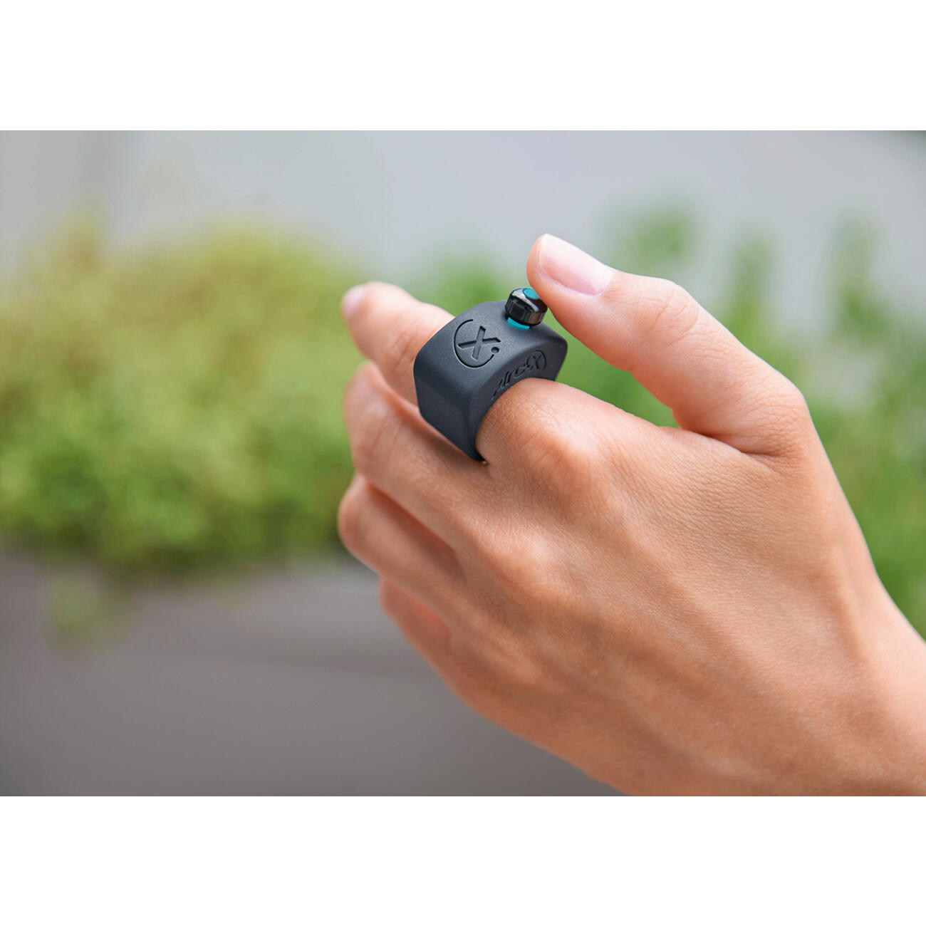 When cycling, skiing, paddling, jogging, fitness training, ... With the award-winning* ArcX ring on your index finger, you can now control your favorite music quickly, safely and casually. A quick press of the thumb on the mini joystick in the silicone ring is enough to start and pause, turn the volume down/up, forward and back. Your cell phone stays safely stowed away or put down. You remain fully concentrated. And the smart Bluetooth remote control can do even more.