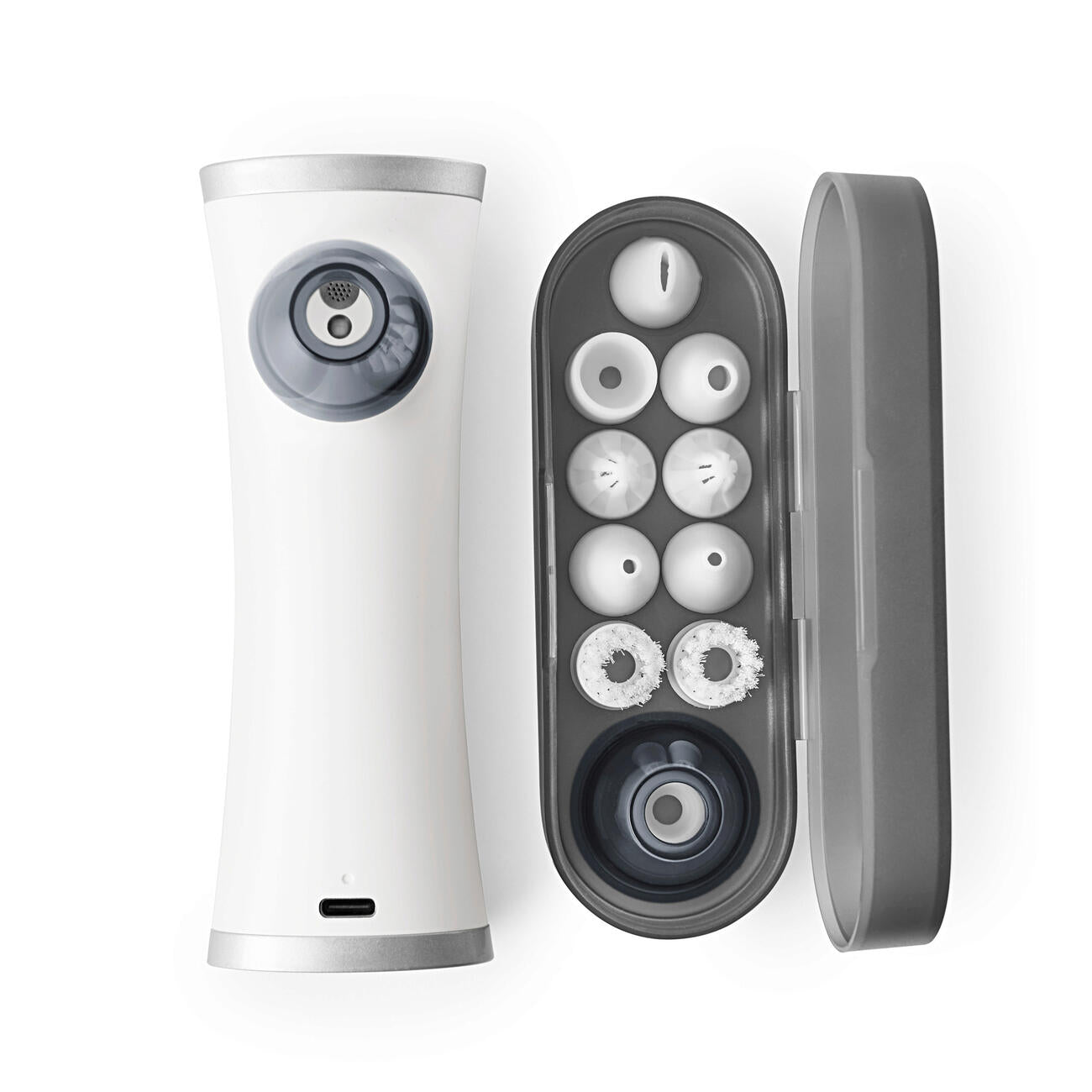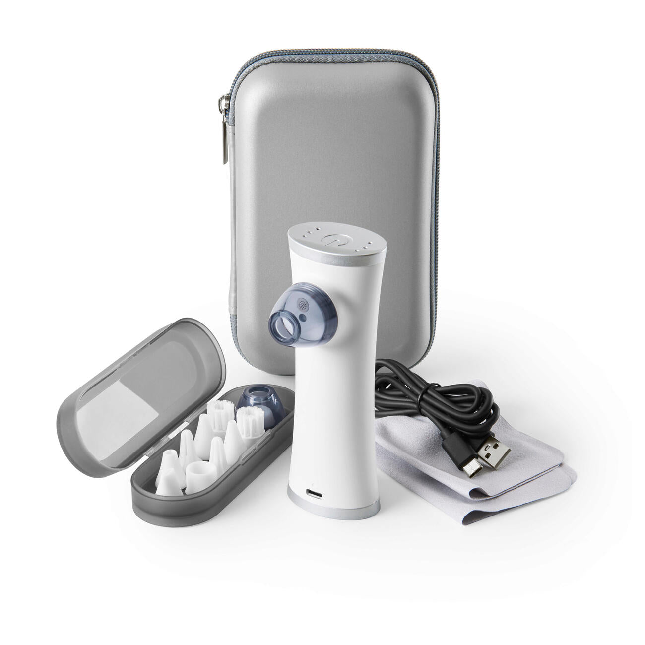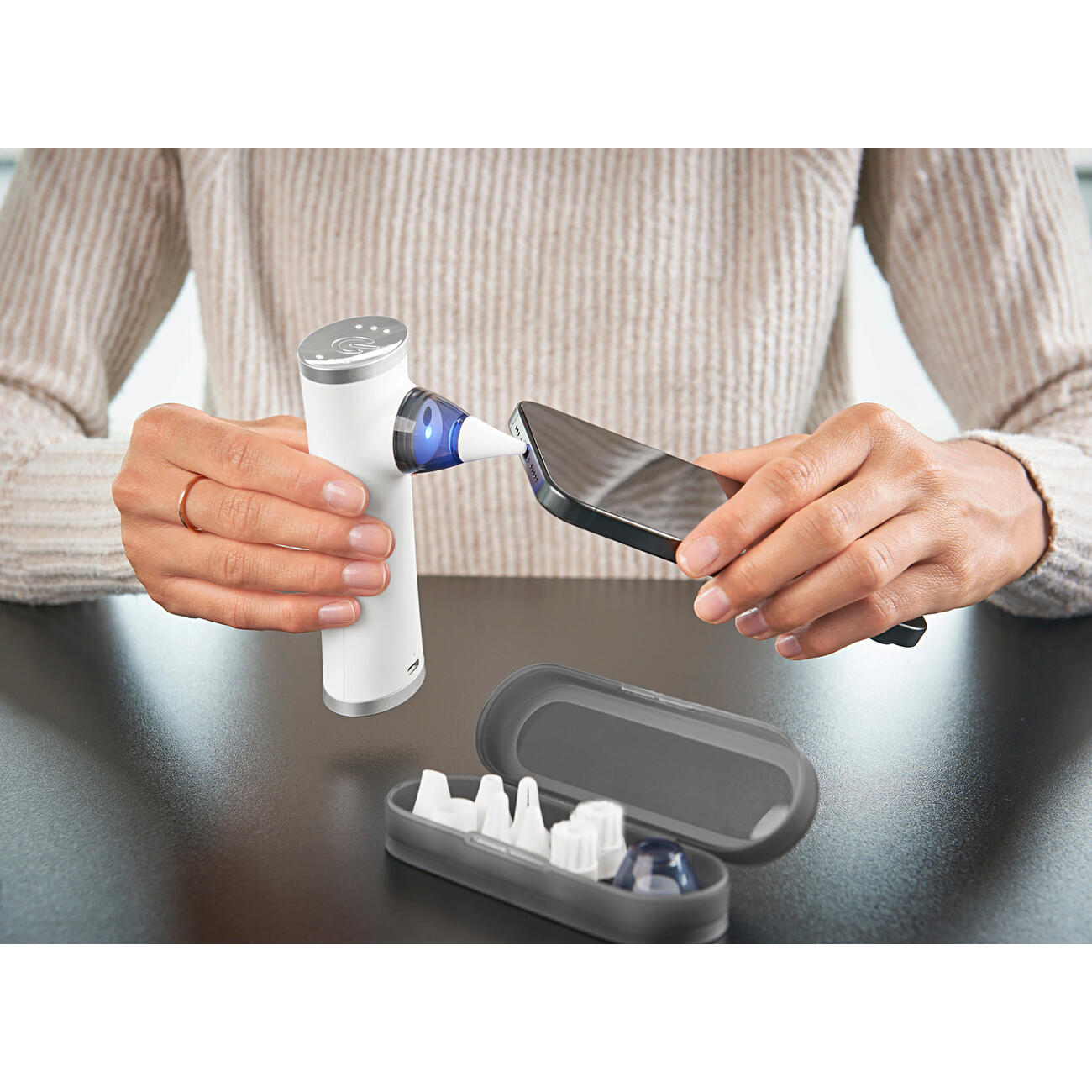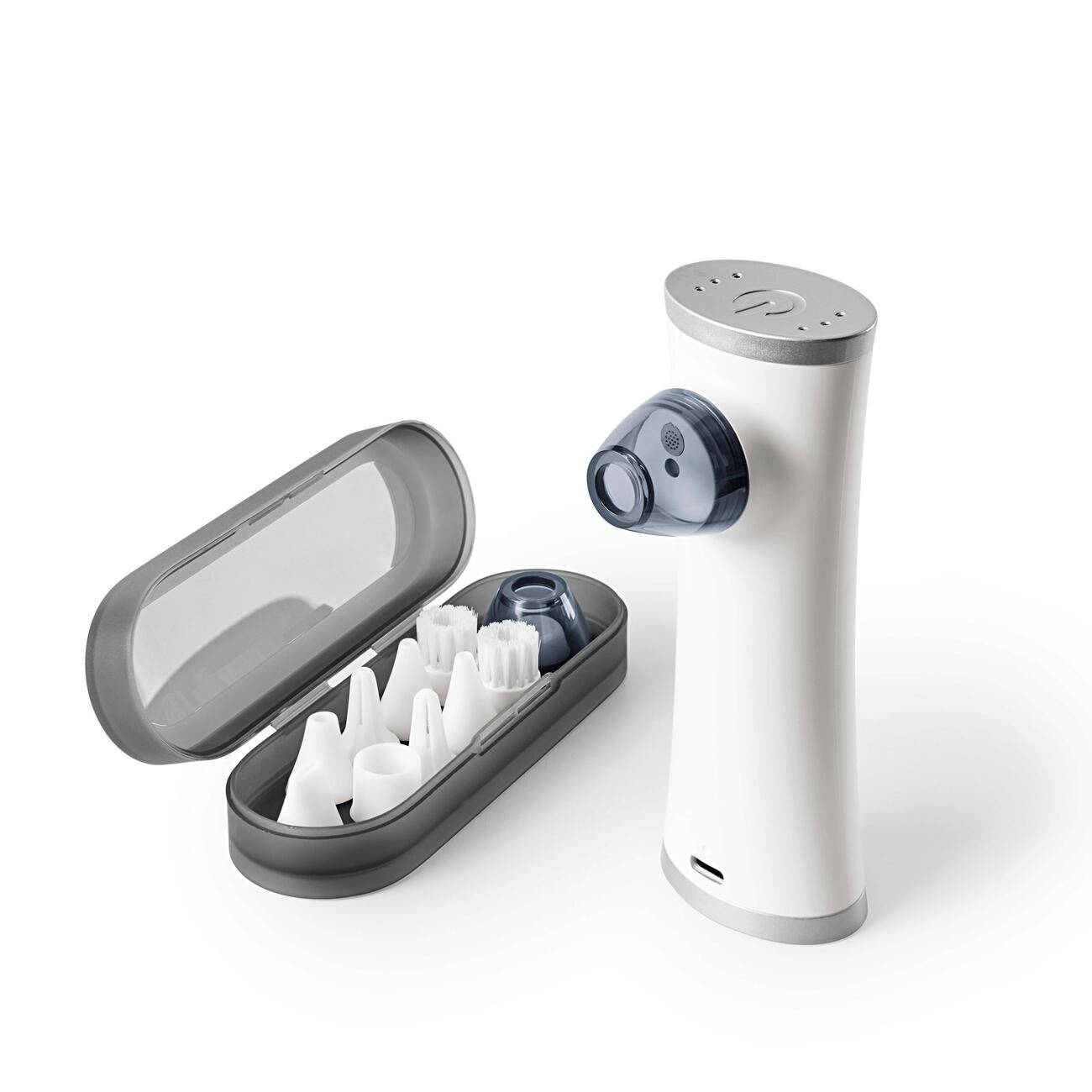 You select the right attachment and suction mode and clean with uncompromising thoroughness. Also ideal for use on skin impurities, water in the ear and easy cerumen removal. The 1,100 mAh lithium polymer battery is charged via a USB-C port. USB-C charging cable included (USB power adapter sold separately). Charging time and operating time each approx. 2.5 hours. Delivered in a practical storage box. Measures 13 x 4.7 x 3.3 cm. Weighs approx. 140 g.
