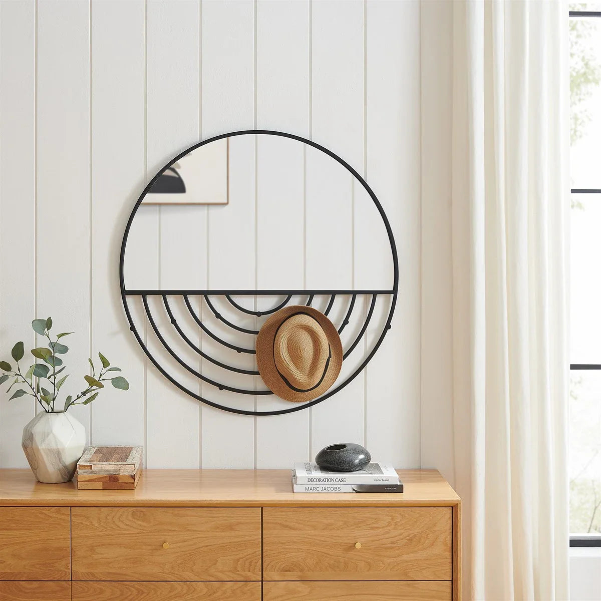 Round Wall Mirror With Hooks