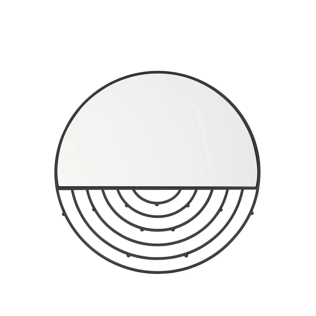 Your morning routine will be a breeze with this storage-savvy twist on a classic fave. This round mirror features eleven jewelry hooks so you can hang your precious pieces and handle those pesky clasps all in one fell swoop. The mirror’s lightweight ten-pound frame hangs easily anywhere so you can perch it at your entryway for an easy grab-and-go station for keys and jewelry. A sanded-black metal frame lends a timeless classic look, making this the perfect piece for your own sanctuary, or your littles’.