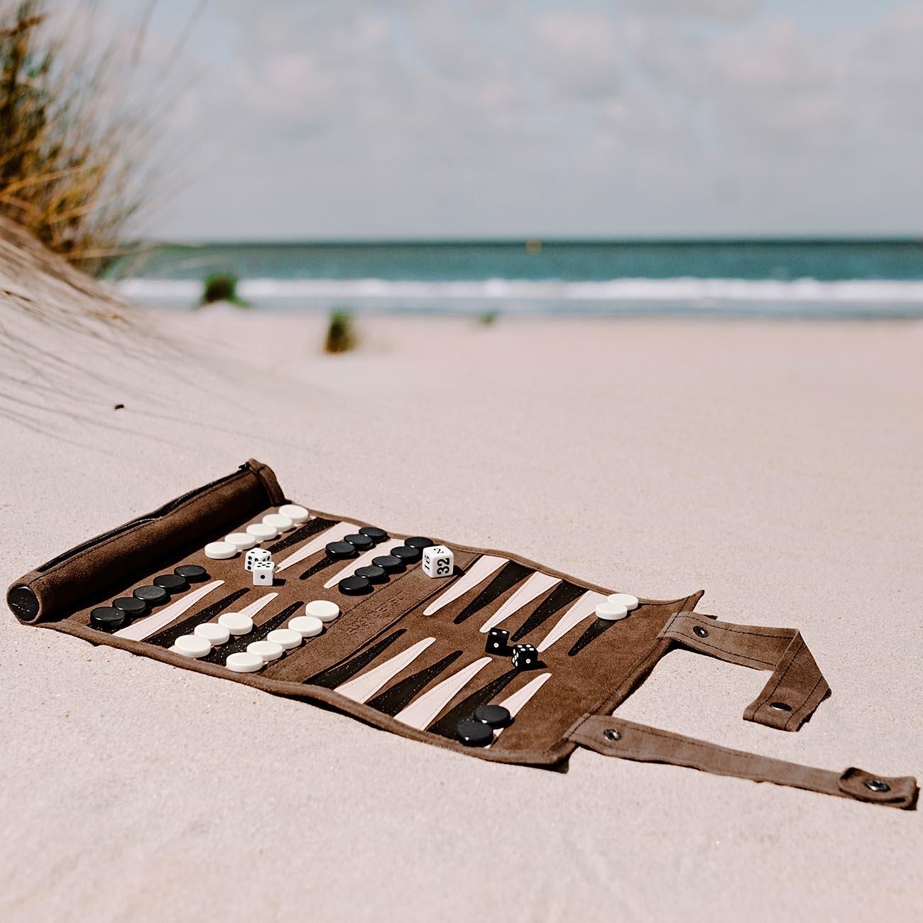 Relaxation on the beach, on the plane, in the hotel bar, ... now you can play chess, checkers or backgammon practically anywhere - and with class. These hand-sewn, original-sized games made of supple cowhide are real collector's items. And the well-fitting melamine pieces cannot slip easily, even on bumpy flights or sea voyages.